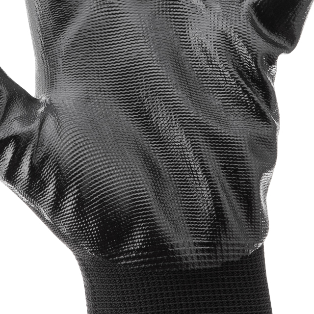 Долоні рукавиць вкриті сірим нітрилом для стійкішого захисту рук від забруднень і механічних пошкоджень. При цьому рукавиці не сковують рухи пальців. Мають в'язаний манжет для фіксації на зап'ясті проти потрапляння всередину пилу і дрібних частинок.