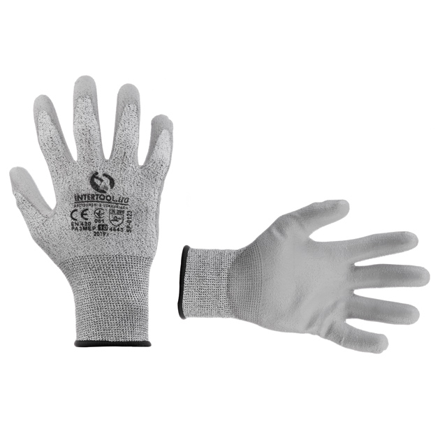 Рукавичка трикотажна порізостійка з покриттям з поліуретану на долоні, сіра, 10"