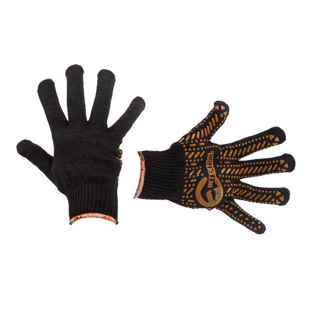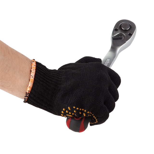 Точкове ПВХ покриття внутрішньої сторони забезпечує покращене зчеплення долонь з гладкими і ковзкими поверхнями різних предметів. Рукавиці високої щільності: безшовні, клас в'язки 7, при цьому вони не сковують рухів пальців. Не рекомендовано використовувати у роботі з нафтопродуктами, змащувальними матеріалами і кислотами.