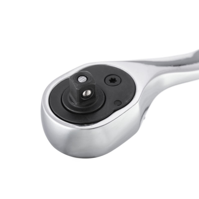 Трикомпонентна ручка з TPR гумою гарантує надійне зчеплення навіть з брудними або забрудненими в мастилі руками. Легка, міцна тріскачка зручно лежить у долоні під час роботи та не вислизає.