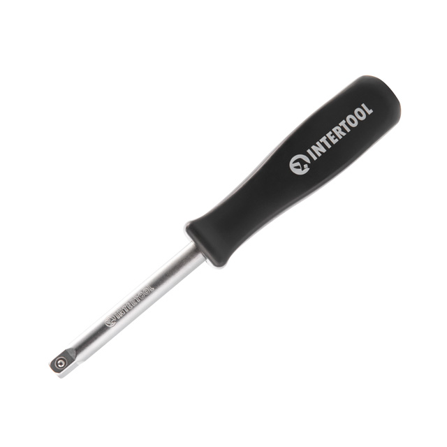 Тримач для головок має досить просту конструкцію та застосовується для роботи з різними кріпленнями. Головки кріпляться до посадкового квадрата 1/4". Ручка з гранями проти ковзання в долоні.