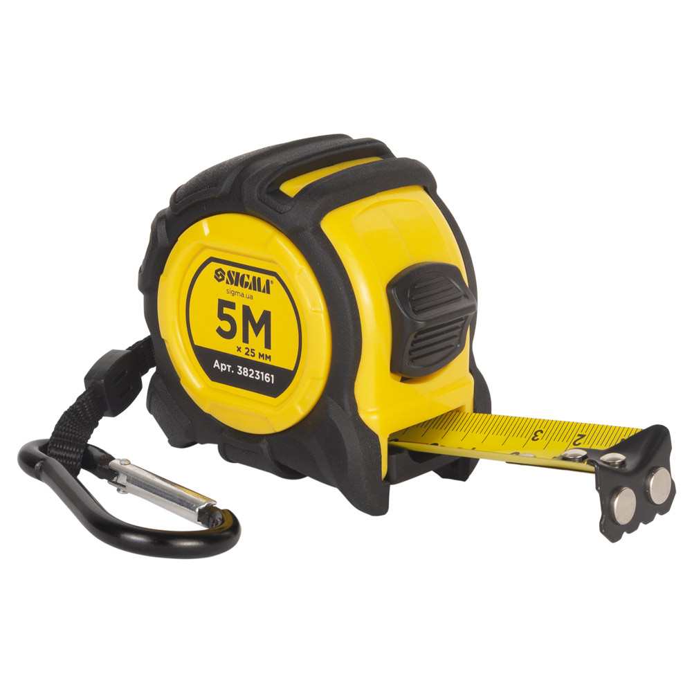 Рулетка магнітна гумова Advanced нейлонове покриття 5м×25мм SIGMA (3823161)