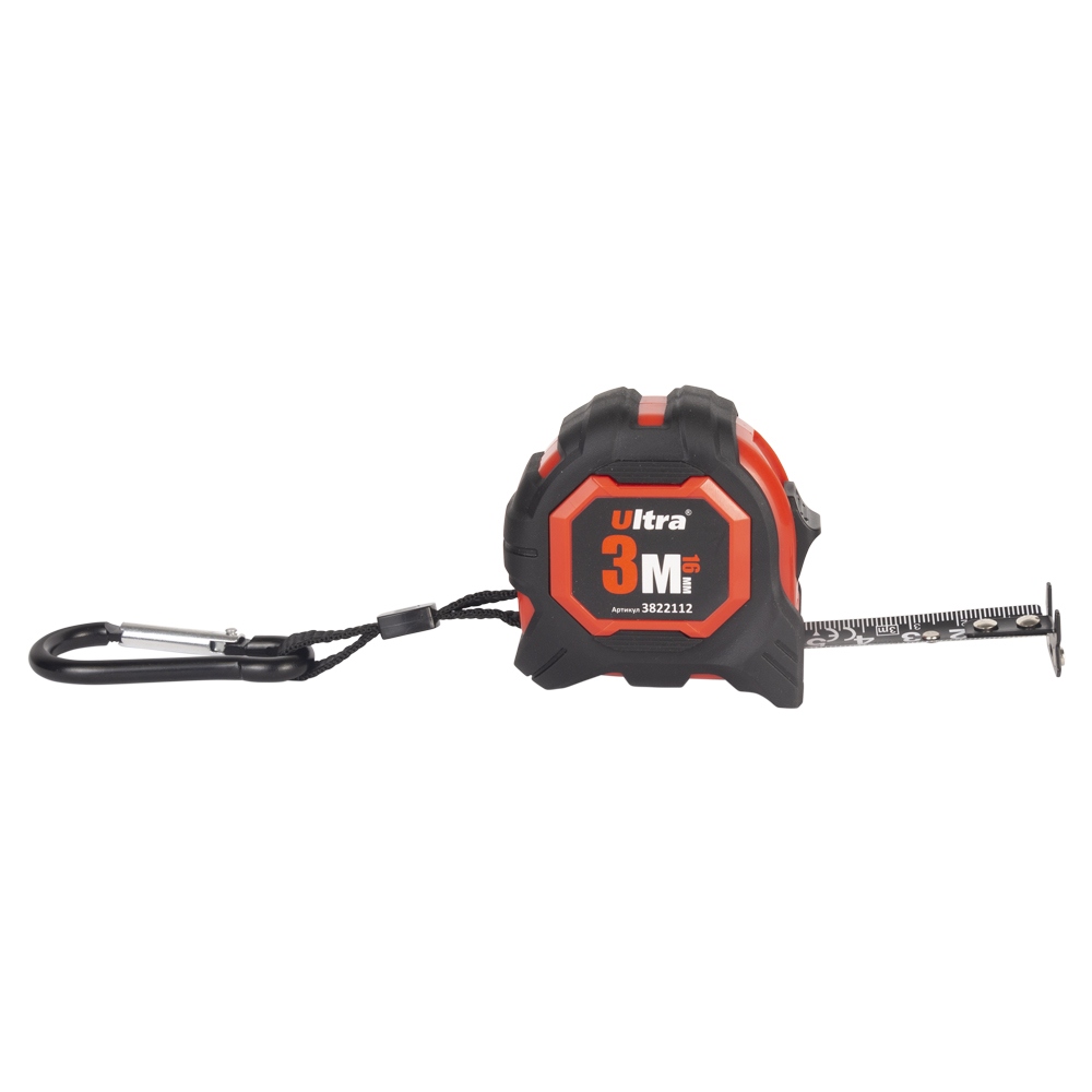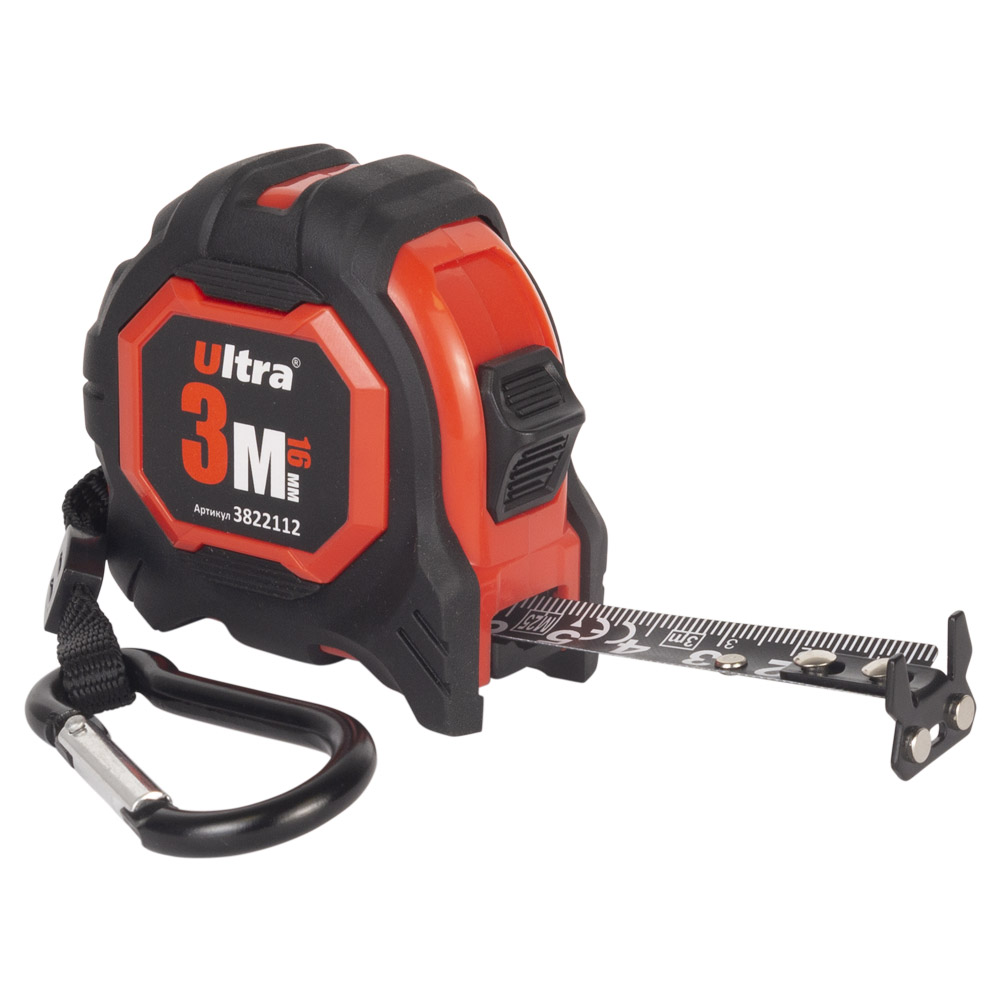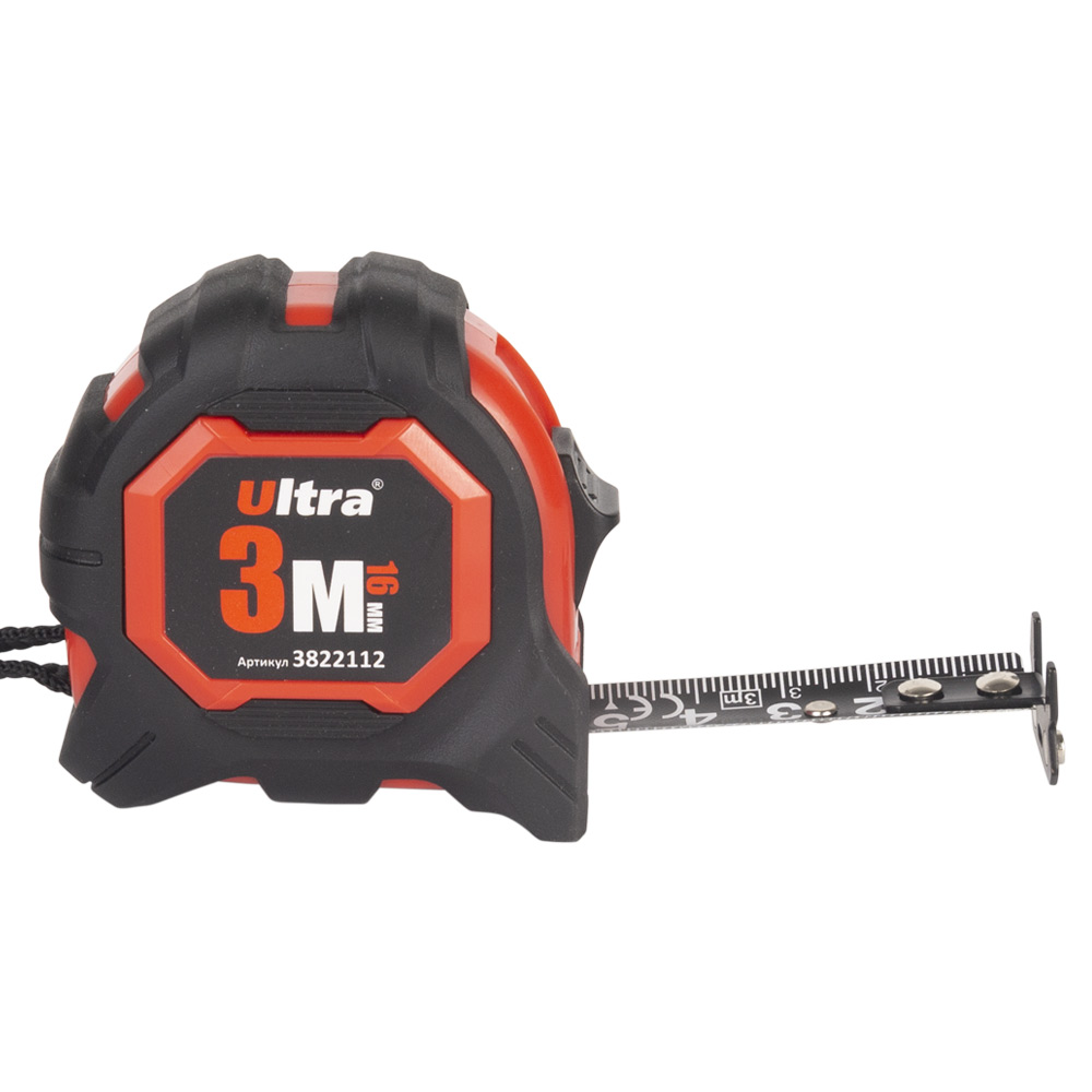 Рулетка магнітна гумова Extra нейлонове покриття двостороннє полотно/зачіп 3м×16мм ULTRA (3822112)