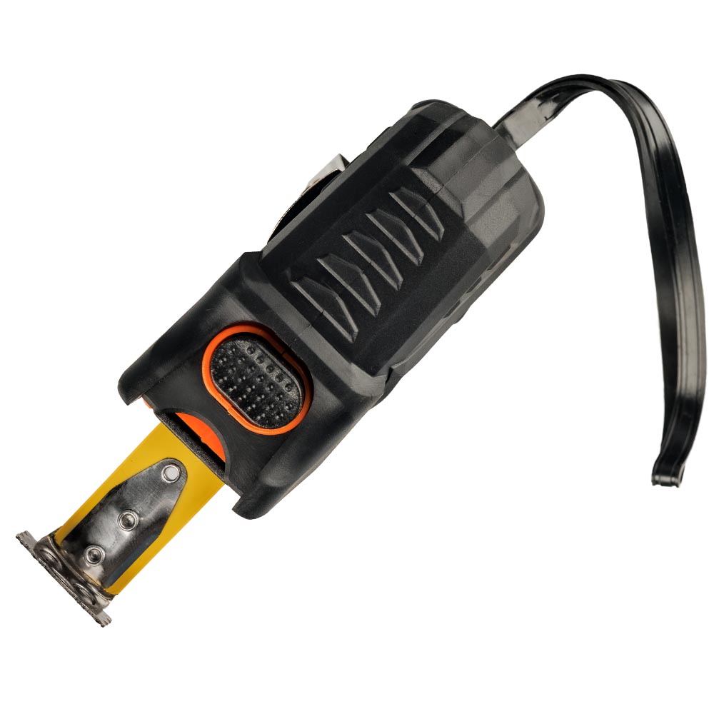 - Гумове покриття TPR забезпечує надійне зчеплення з рукою, запобігає вислизу рулетки під час роботи і виконує амортизуючу функцію при падінні