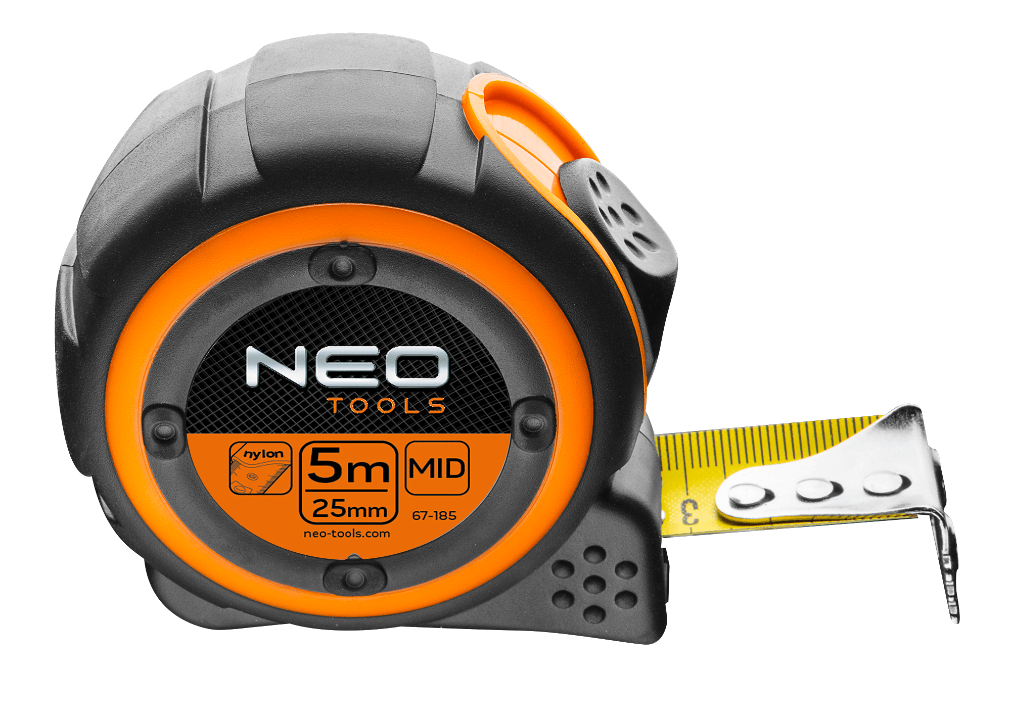 Рулетка Neo Tools, 5м x 25мм, 2 фіксатори змотування, магніт (67-185)