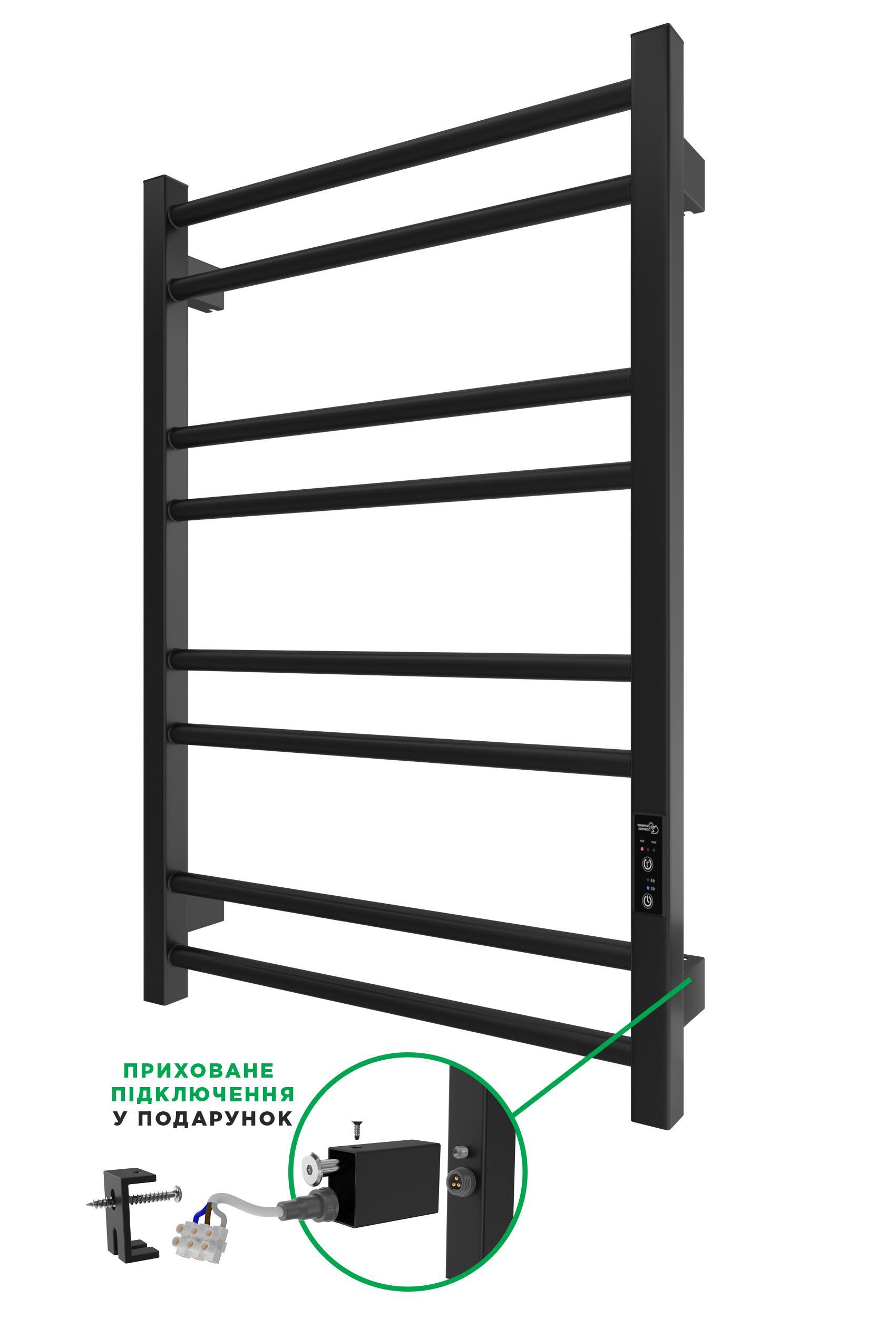 Рушникосушка ARDESTO електрична Square-TR K, 770x530х80мм, таймер-регулятор, сталь, чорний матовий