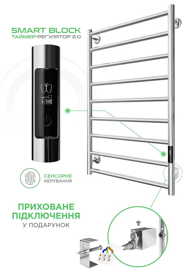 Рушникосушка Mario електрична Урбан-I, 810x500x85мм, таймер-регулятор 2.0, нерж.сталь, хром