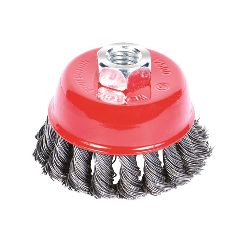 Щітка дротяна чашеподібна Ø100мм М14×2мм (сталева кручена) Sigma (9026101) призначена для використання в якості насадки для УШМ при зачистці поверхонь від лакофарбових покриттів, іржі, окалини, різних забруднень, металевих поверхонь. Підходить для обробки зварних швів, виливків із чавуну, сталі та кольорових металів.