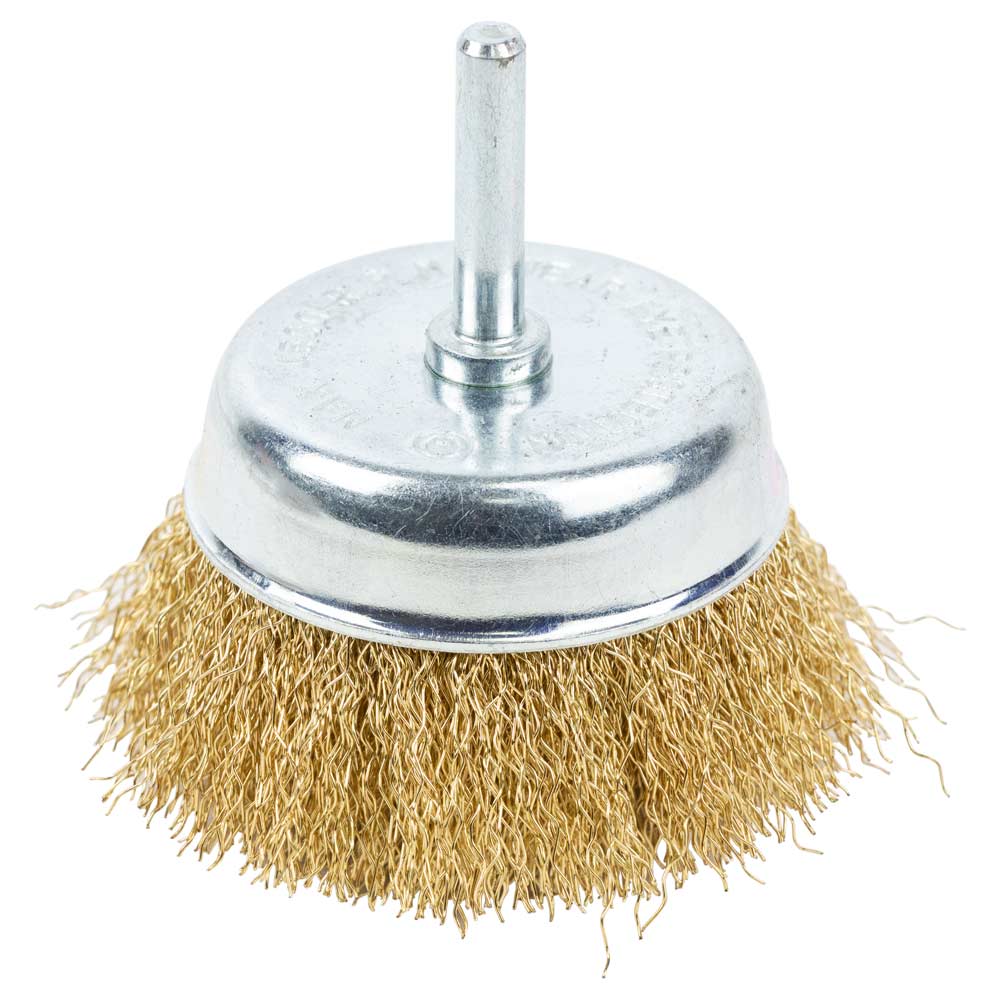Щітка дротяна чашоподібна Ø75мм хвостовик Ø6мм (латунированная) GRAD (9034075)