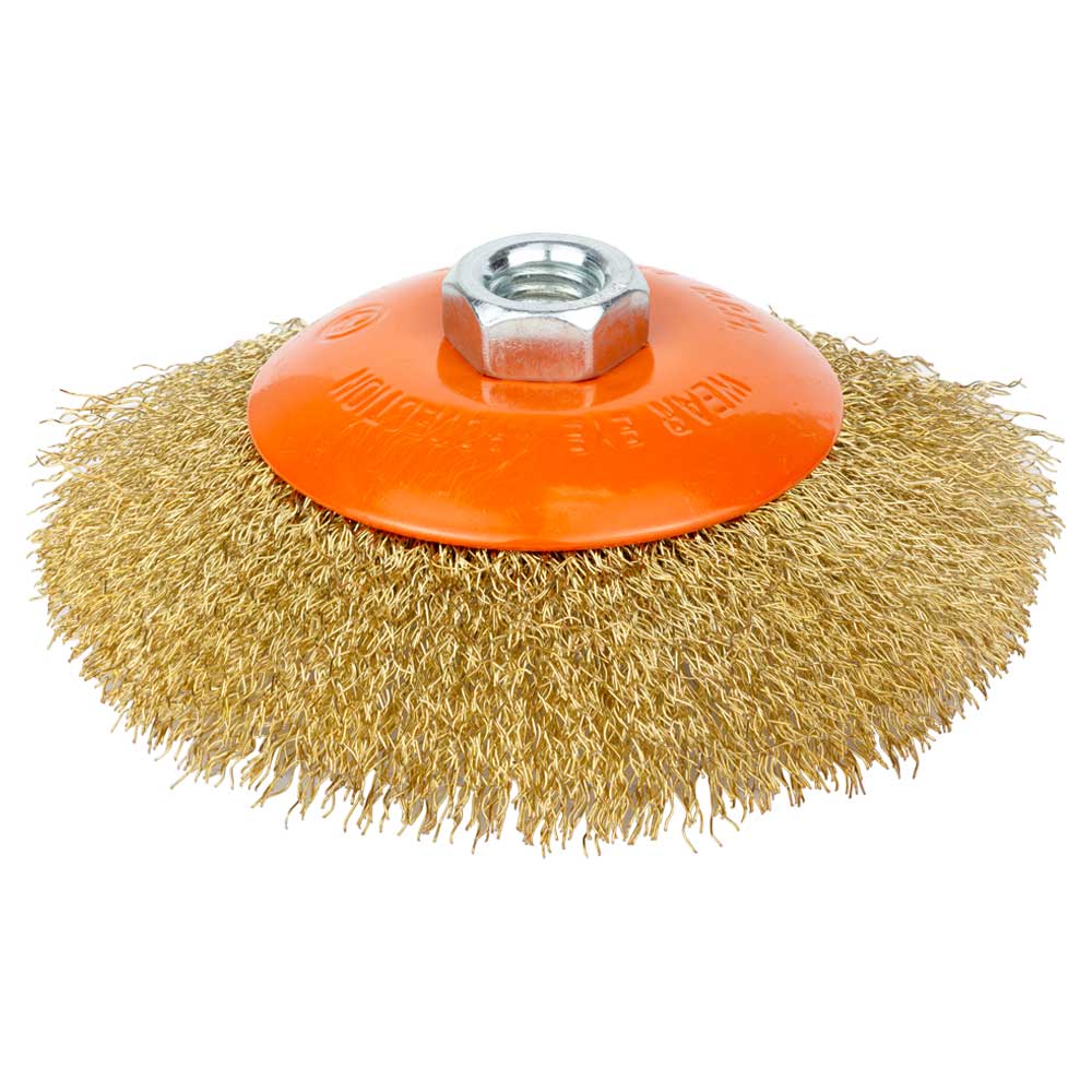 Щітка дротяна конусоподібна Ø125мм М14×2мм (латунированная) GRAD (9035125)