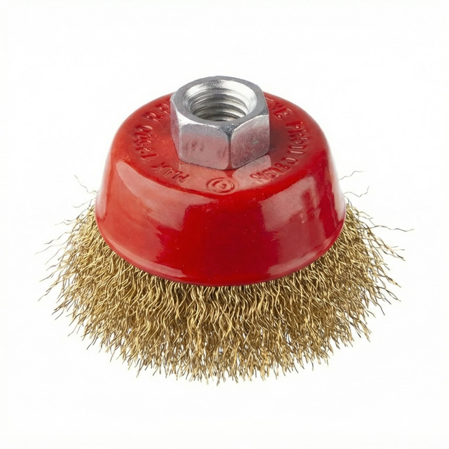 Щітка чашкова, 65 мм, M14, кручений дріт покритий латунню, для КШМ, 12500 об/хв