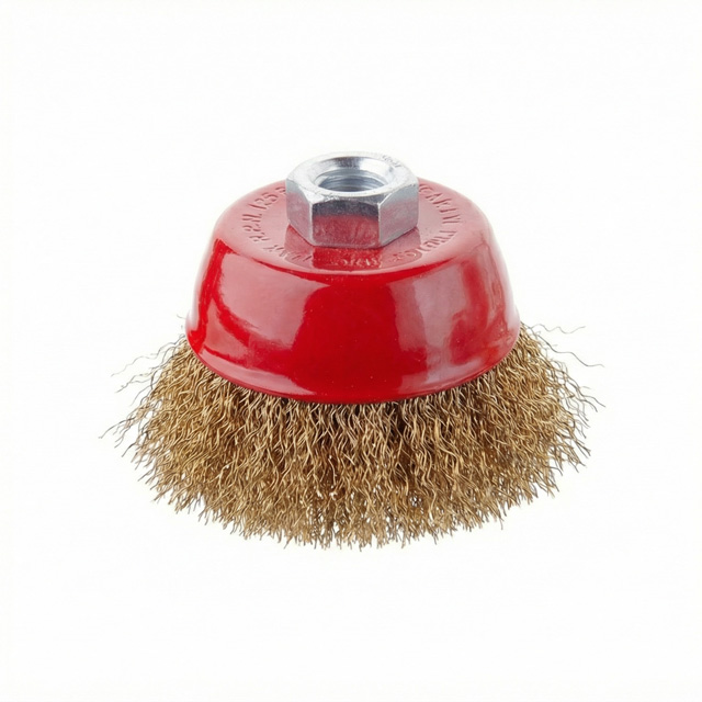 Щітка чашкова, 85 мм, M14, кручений дріт покритий латунню, для КШМ, 8500 об/хв