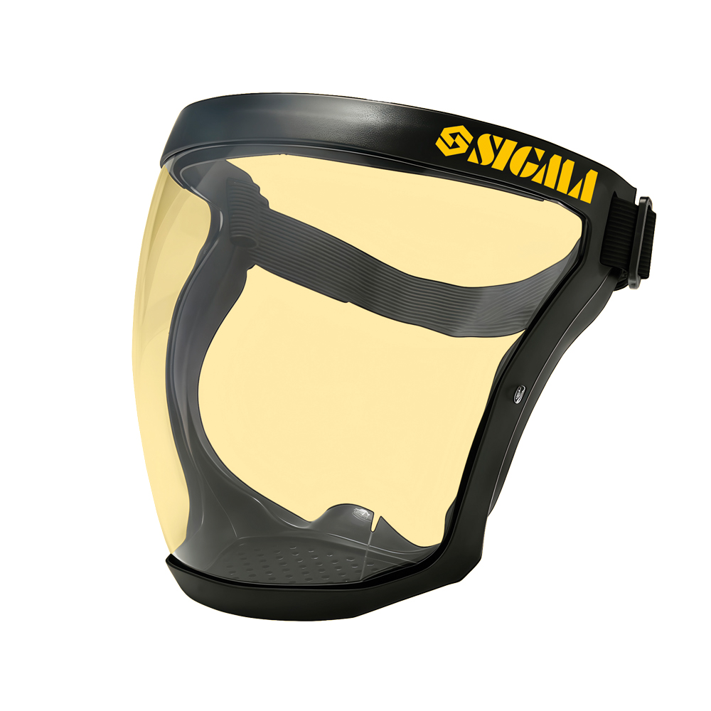 Защитный лицевой щиток изготовлен из качественного и гибкого поликарбоната.