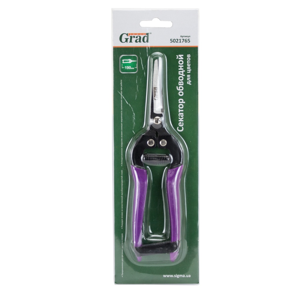 Секатор обвідний для квітів 190мм Grad (5021765) влаштований за принципом ножиць, призначений для обрізки молодих пагонів та зрізання квітів.