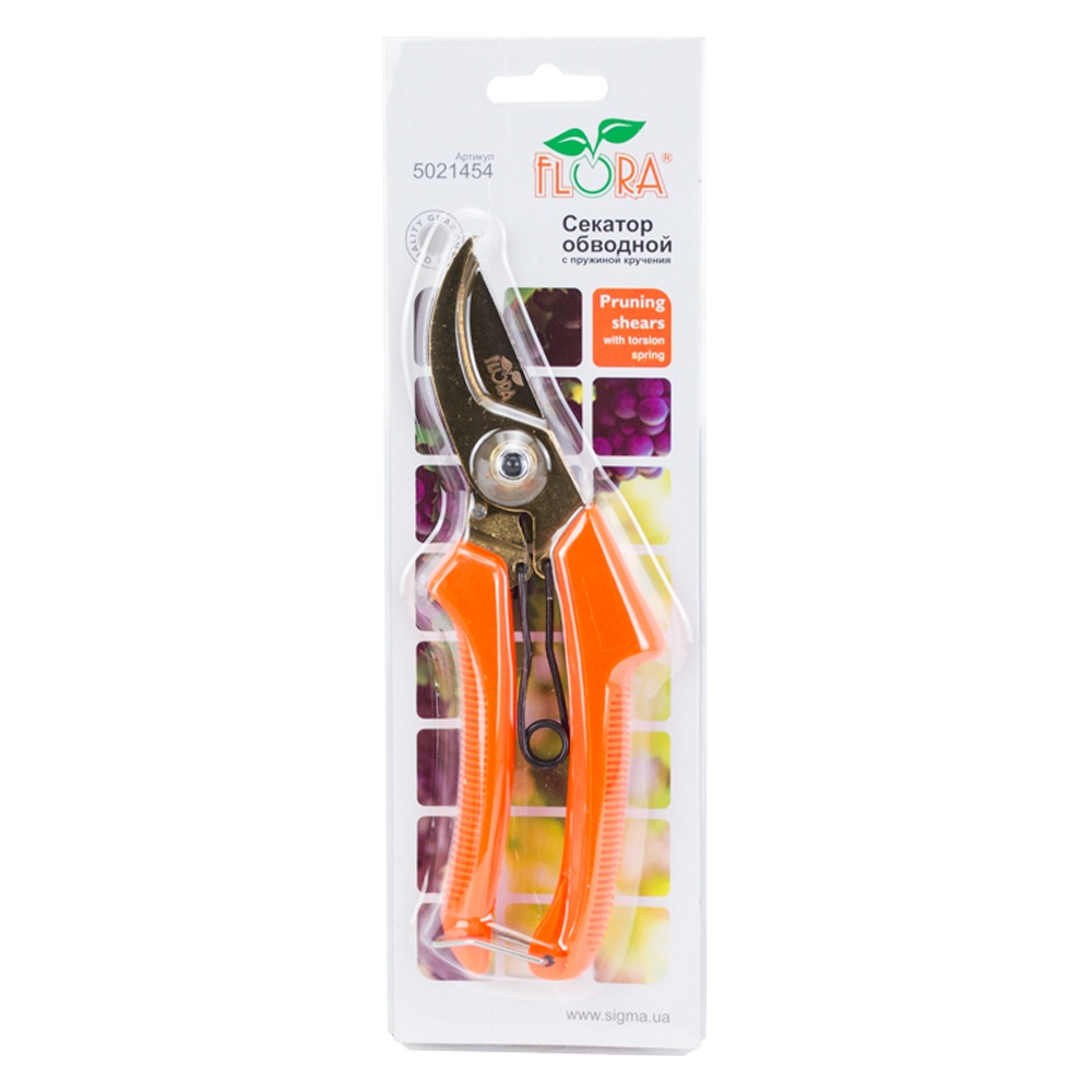 Секатор обвідний з пружиною кручення 205мм Flora (5021454) призначений для обрізання пагонів та гілок діаметром до 16 мм при формуванні та проріджуванні крони дерев, чагарників, збиранні винограду тощо.