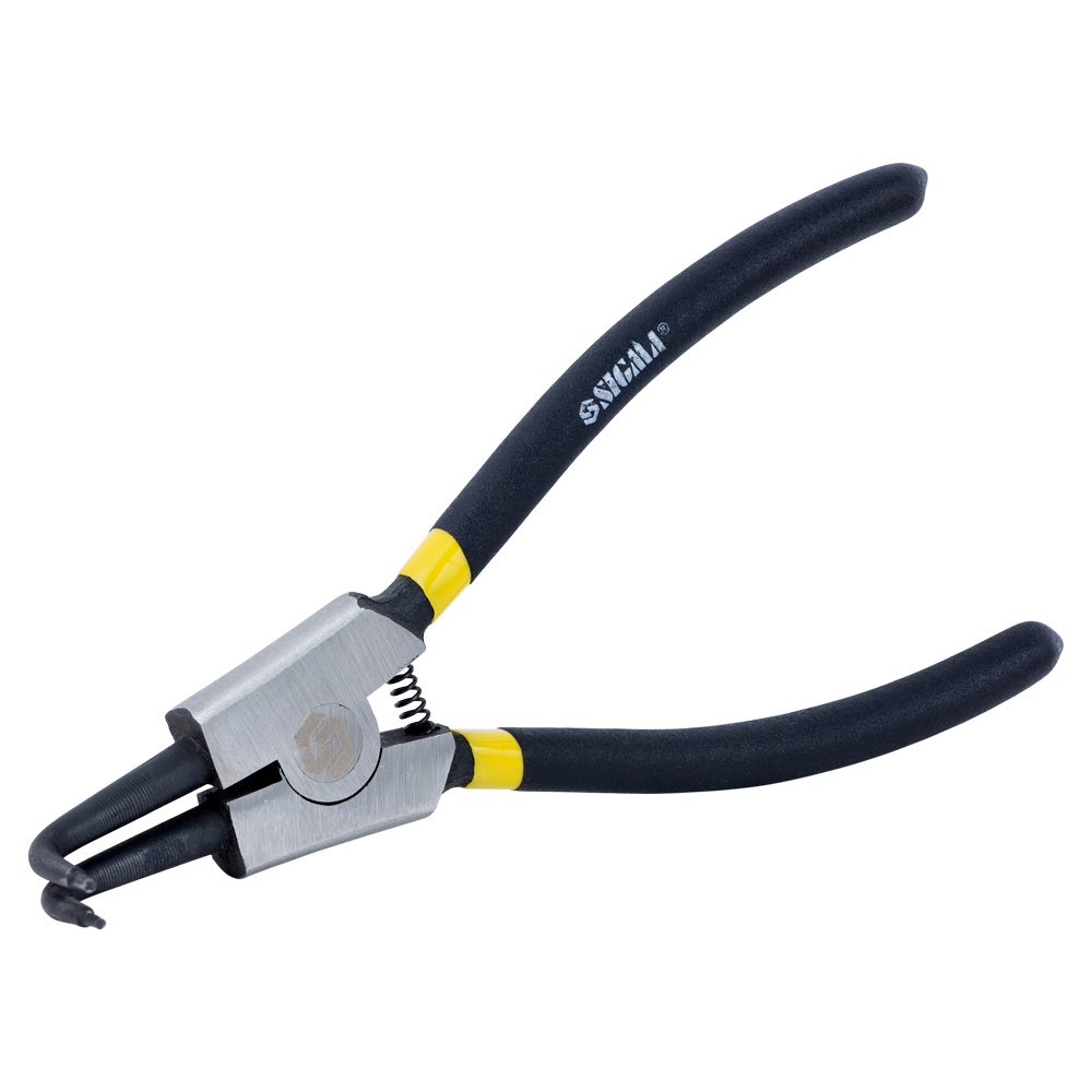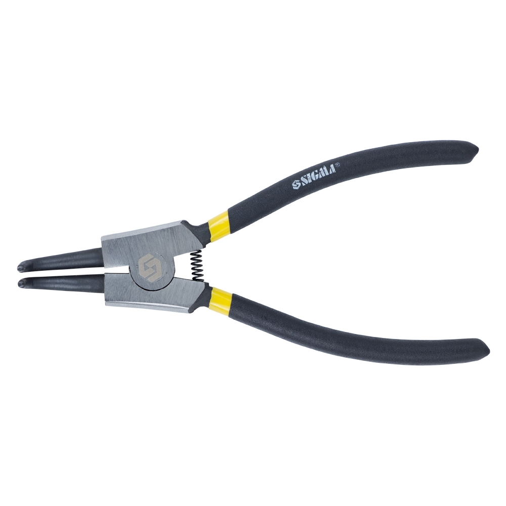 Знімач стопорних кілець 200мм (зовнішні гнуті) Sigma (4350181) призначений для монтажу та демонтажу внутрішніх та зовнішніх стопорних кілець. Виготовлені із високовуглецевої інструментальної сталі, пройшли термічну обробку. Рукоятки мають спеціальне маслостійке протиковзне покриття.