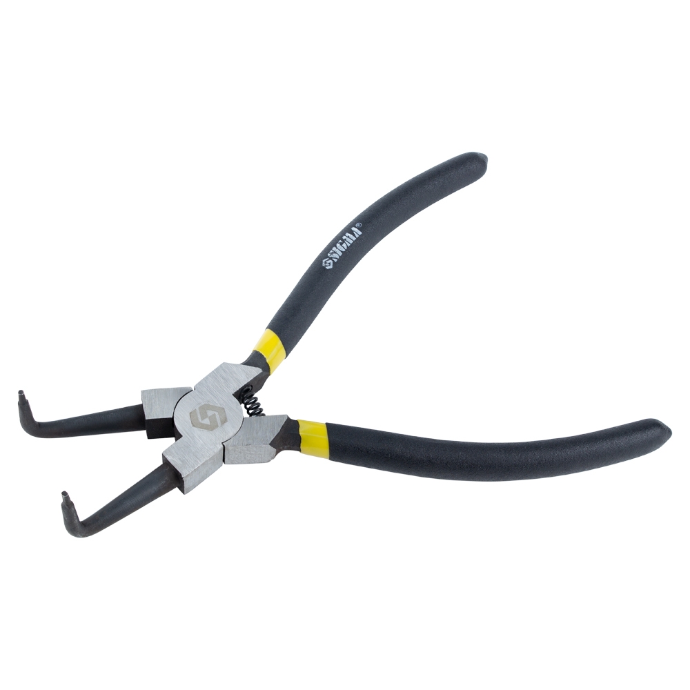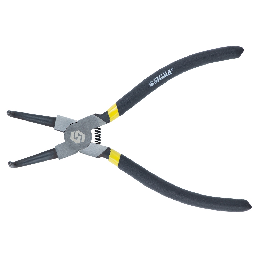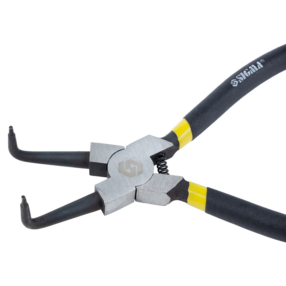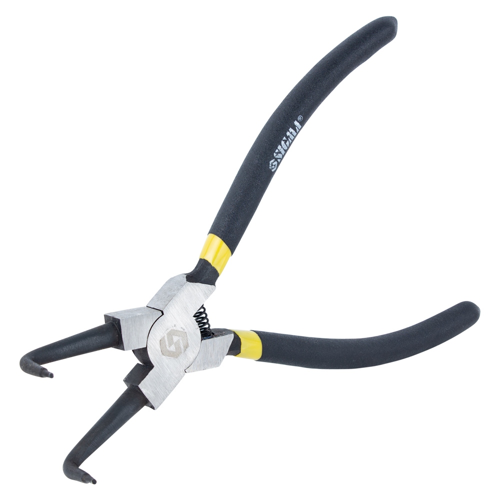 Знімач стопорних кілець 200мм (внутрішні гнуті) Sigma (4350161) призначений для монтажу та демонтажу внутрішніх та зовнішніх стопорних кілець. Виготовлені із високовуглецевої інструментальної сталі, пройшли термічну обробку. Рукоятки мають спеціальне маслостійке протиковзне покриття.
