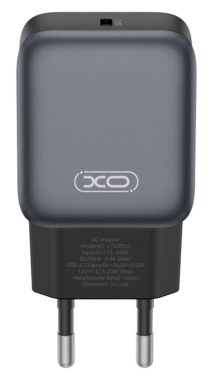 Зарядний пристрій XO L153 - 20W PD Single port USB-C (Black)