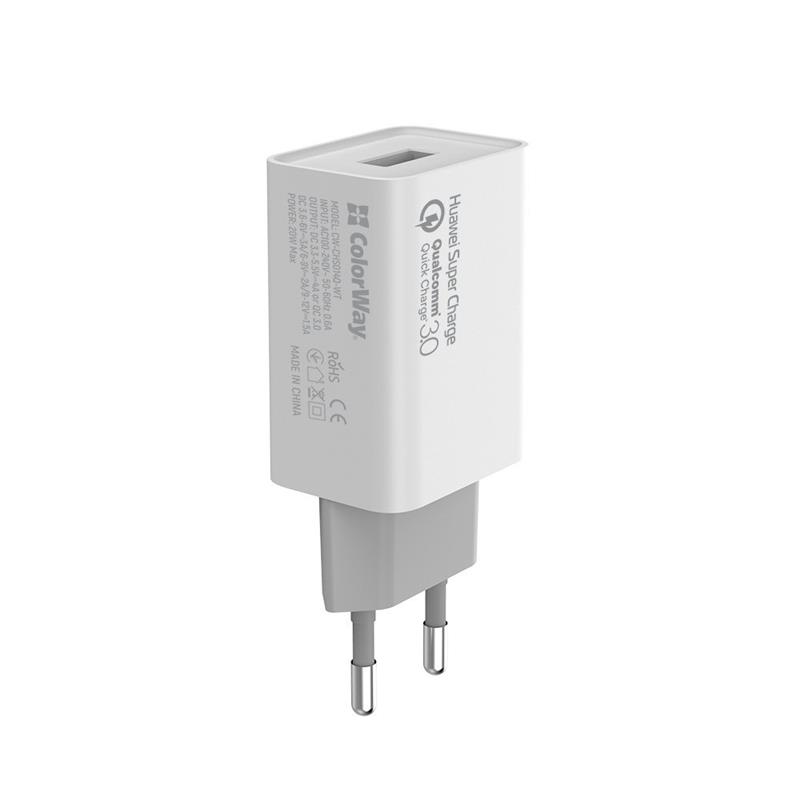 Зарядний пристрій ColorWay QC3.0 (1USBx4A) White (CW-CHS014Q-WT)