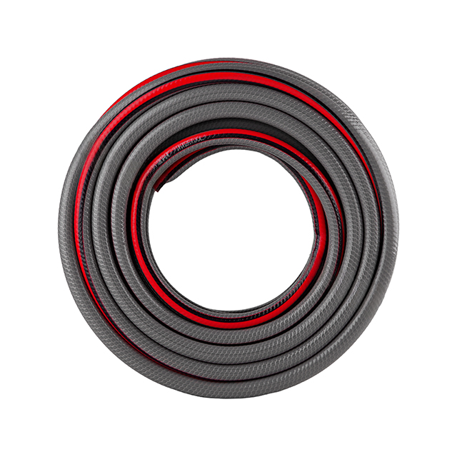 Конструкція шланга виконана з чотиришарового ПВХ з армуванням, посилена синтетичною ниткою з панчішним (квадратним) плетінням. На відміну від стандартного перехресного армування, така технологія формує більш щільну та рівномірну структуру, що дозволяє шлангу зберігати свої експлуатаційні властивості навіть у складних умовах роботи. Завдяки цьому підвищується стійкість до зносу, перегинів та механічних навантажень. Шланг не розтягується під тиском, зберігає стабільний діаметр та форму в процесі експлуатації. Посилена конструкція забезпечує надійну роботу при тиску до 15 бар та гарантує довговічність виробу.