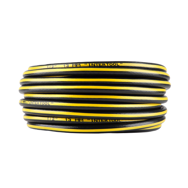 Водяний шланг для поливу не заламується, при цьому дуже еластичний. Виготовлений з чотиришарового ПВХ матеріалу, з армованим обплетенням. Завдяки особливій технології армування з сітчастим плетінням шланг не розтягується під тиском, а діаметр не змінюється з часом. Такий садовий шланг витримує мороз до -5 °C, а також екстремальну спеку до +60 °C!