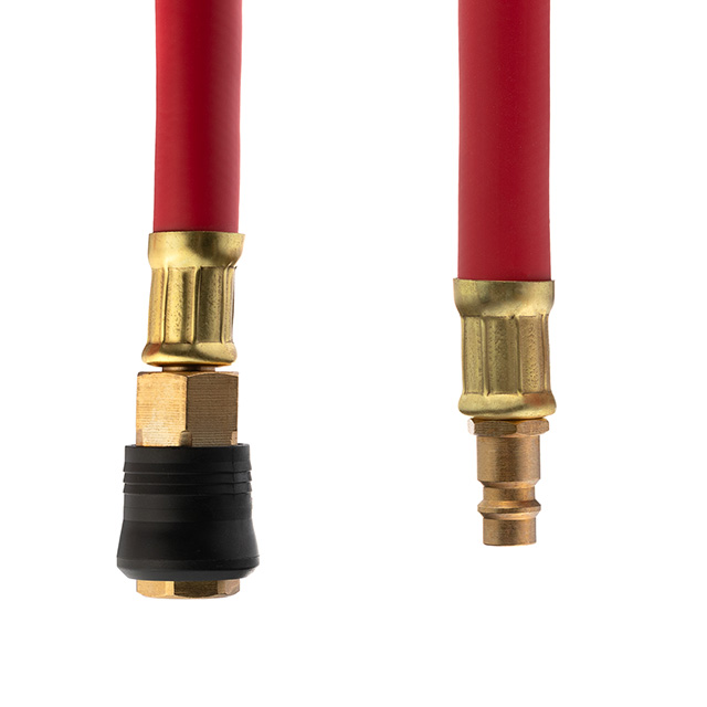 Шланг легко підключається до системи за допомогою швидкороз'ємних з'єднань європейського типу, вони герметичні та дозволяють швидко під’єднати пневмоінструмент до компресора. Виготовлені з'єднання з латуні, мають ряд переваг перед сталевими фітингами. Характеризуються кращою стійкістю до корозії, мають більший строк експлуатації, довговічніші.
