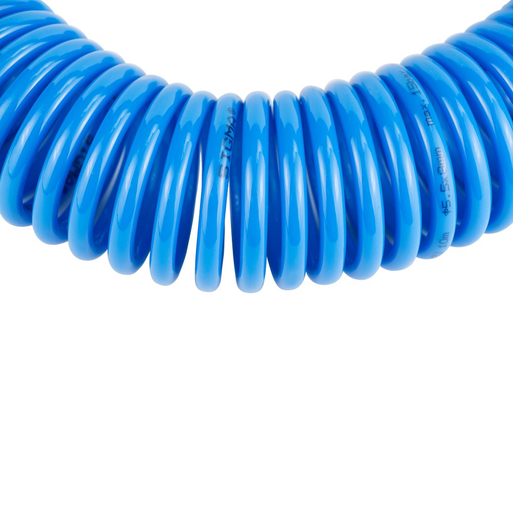 Шланг спіральний поліуретановий (PU) 10м 5.5×8мм Sigma (7012021) використовується для передачі повітря у пневматичних системах стандартного тиску. Має хорошу стійкість до механічних впливів (перегини, стискання, скручування) і швидко відновлює свою початкову форму після зняття механічної дії. Шланг не схильний до гідролізу і має хорошу стійкість до впливу озону і мікроорганізмів.