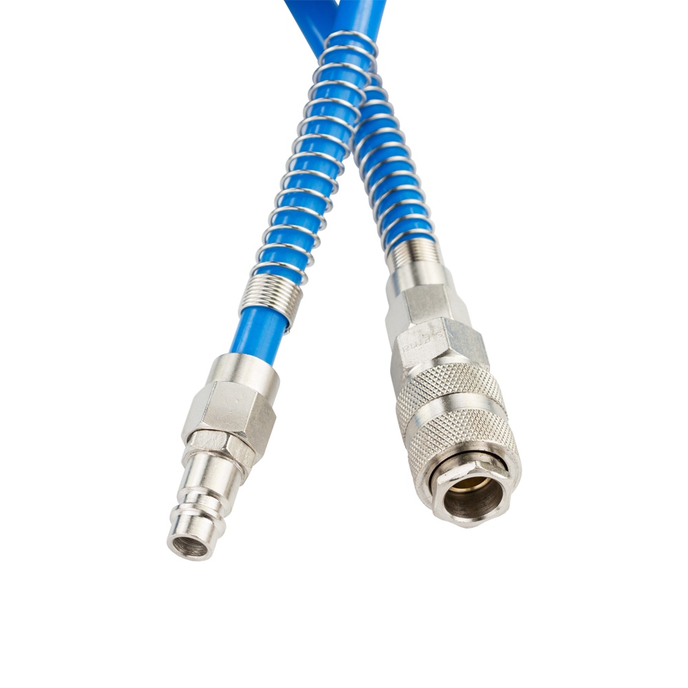- Оснащений швидкороз'ємними з'єднаннями для швидкого підключення до компресора та пневматичного інструменту.
