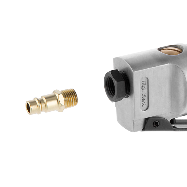 Легка алюмінієва конструкція та малі габарити дозволяють працювати машинкою у місцях з обмеженим доступом. Зручна широка клавіша пуску має запобіжник для безпечної роботи. Також передбачена бокова ручка для кращого контролю над інструментом. Вихід для шланга 1/4" обладнаний універсальним фітингом для швидкого підключення до пневмосистеми.