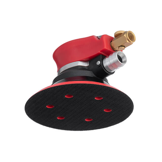 Ексцентрикова шліфувальна машина шліфує як рівні, так і вигнуті поверхні. Як витратний матеріал застосовуються наждакові кола на липучці з отворами для відведення пилу, діаметром 150 мм. Завдяки високій швидкості 9 000 об/хв та ходу ексцентрика 4 мм, ефективно справляється зі своєю роботою, витрата повітря при цьому становить 340 л/хв.