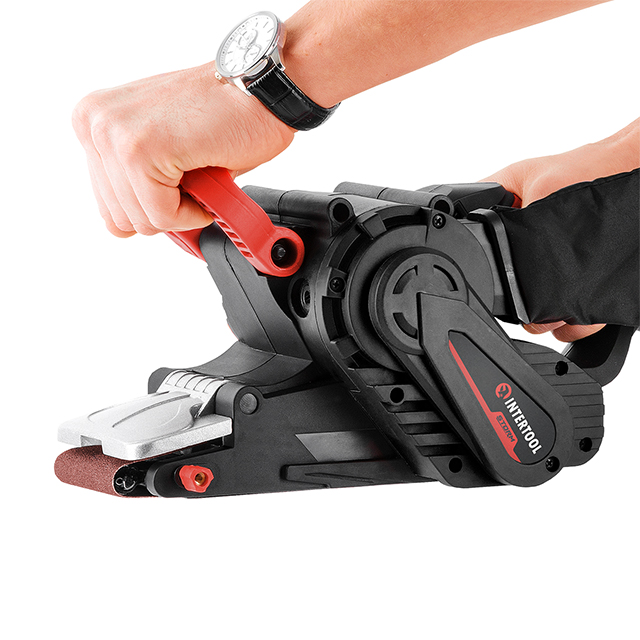 У цієї стрічкової шліфувальної машини центр маси розташований досить низько, тому в процесі роботи не потрібно докладати особливих зусиль. Простота та зручність в роботі вигідно вирізняють дану шліфувальну машину. Прогумована рукоятка шліфувальної машини WT-0530 запобігає ковзанню рук оператора.