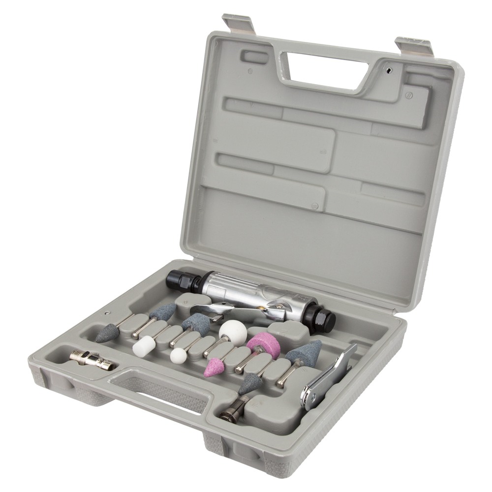 Шліфмашинка пряма пневматична з аксесуарами в кейсі 25000об/хв Sigma (6732851) підходить для шліфування, гравіювання, фрезерування, полірування та інших робіт. При оснащенні відповідними насадками можливе оброблення виробів зі сталі, скла, кераміки та пластику. Інструмент працює на стислому повітрі, що забезпечує високий робочий ресурс та стійкість до перевантажень.