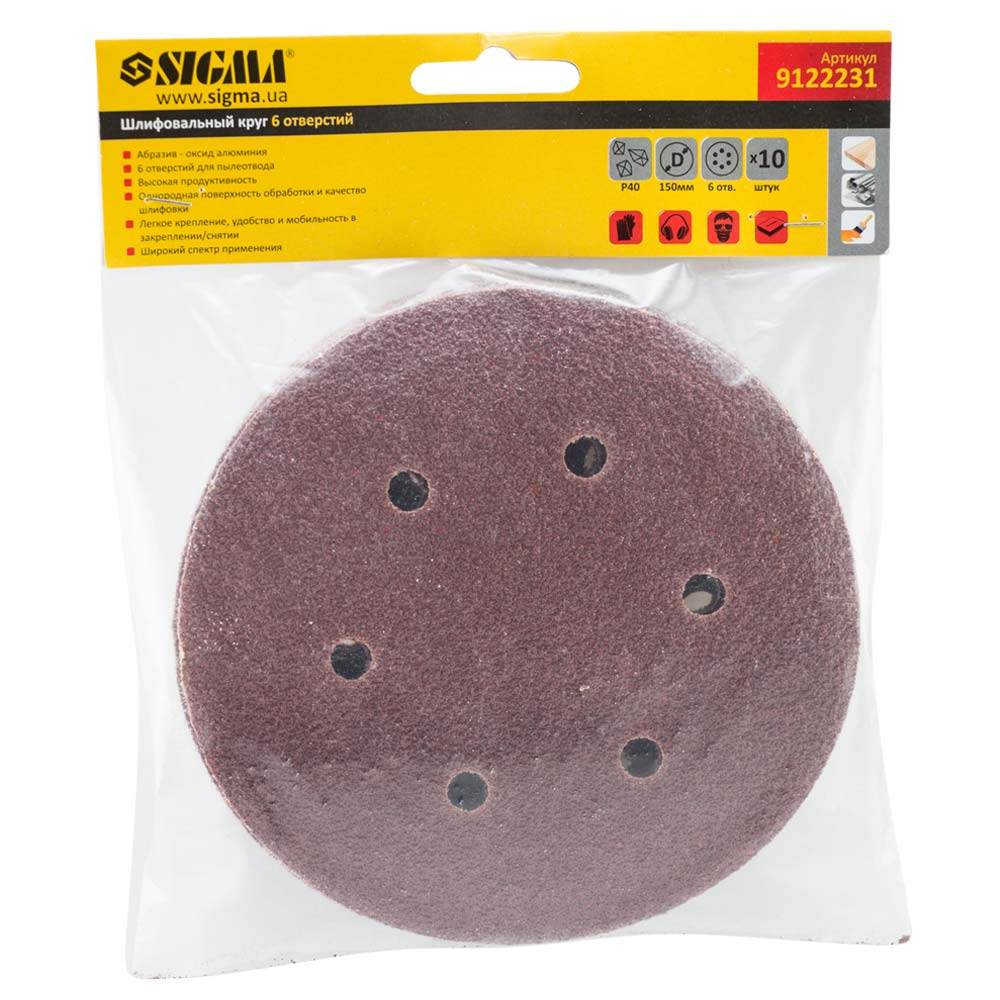 Шліфувальне коло 6 отворів Ø150мм P40 (10шт) SIGMA (9122231)