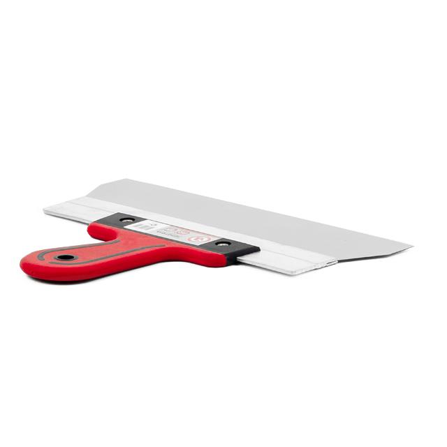 Ручка з пластику та напрямна з алюмінію роблять шпатель досить легким та зручним у використанні. Ручка має спеціальну ергономічну форму, що забезпечує максимально комфортну роботу. Гумове покриття проти ковзання в руках.