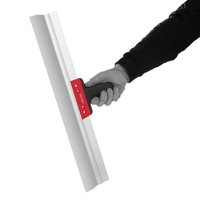 Ручка з пластику та алюмінієва напрямна роблять шпатель досить легким та зручним у використанні. Ручка має спеціальну ергономічну форму, що забезпечує максимально комфортну роботу. Покриття з гуми TPR проти ковзання в руках.