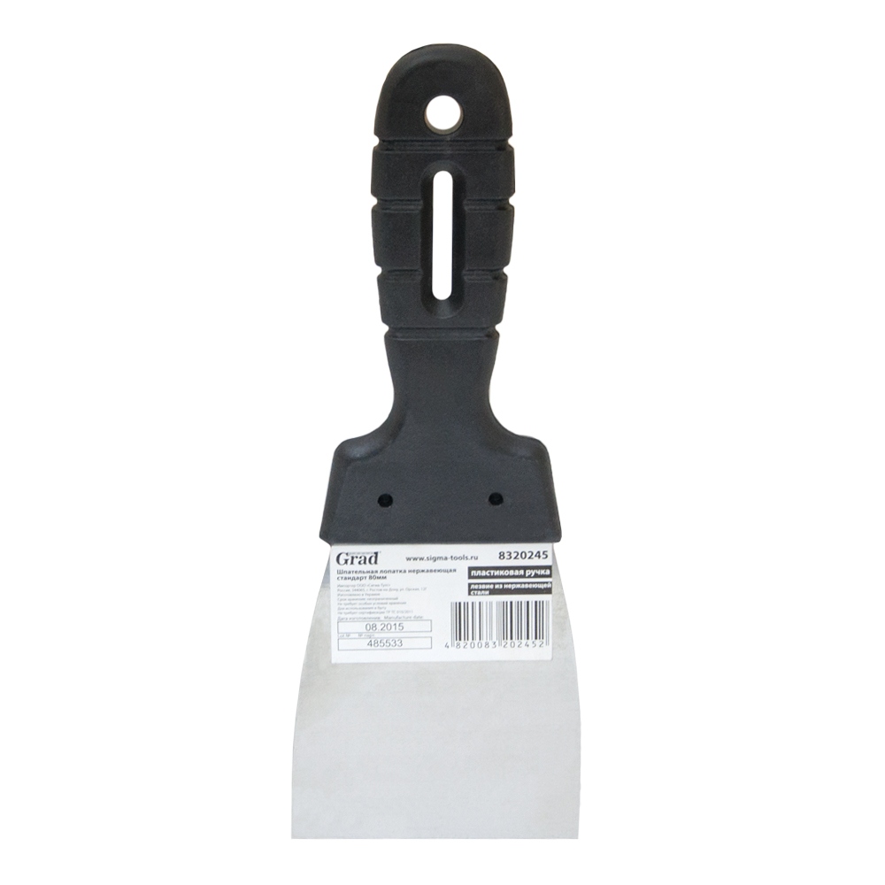 Шпательная лопатка стандарт (нержавеющая) 80мм Grad (8320245) с нержавеющим лезвием, которое имеет переменную толщину для дополнительной гибкости и упругости. Инструмент наделен пластиковой ручкой. Шпатель применяется для оштукатуривания наружных и внутренних стен, потолков — для нанесения шпатлевок, мастик и густых клеевых смесей.