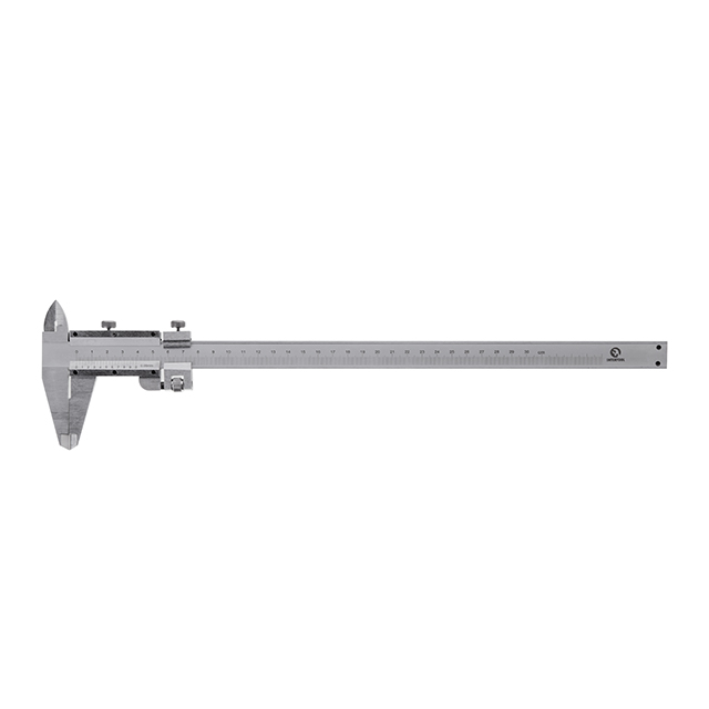 Губки штангенциркуля з двох сторін забезпечують точні вимірювання для розмітки внутрішніх та зовнішніх параметрів. Вимірювальна довжина становить 300 мм, довжина щелепи 40 мм. Оснащений коліщатком для підведення пальцем та стопорним гвинтом
