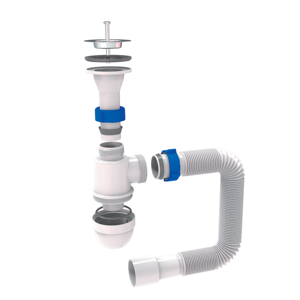 Сифон для раковини з випуском нерж. сталі та гнучким відведенням 1½"ר40/50мм TAU (9841752)