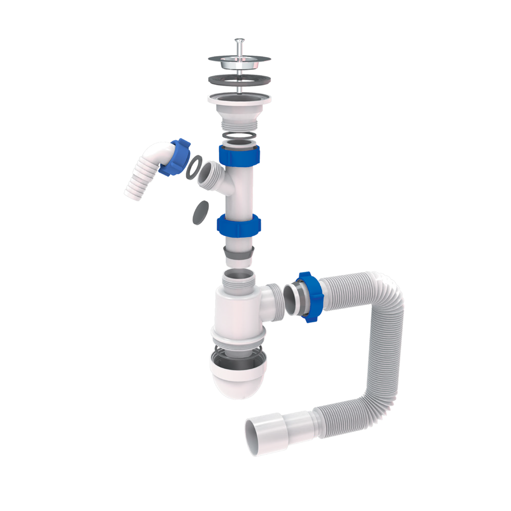 Сифон для раковини з випуском нерж. стали виведенням під стир. машину та гнучким відведенням 1½"ר40/50мм TAU (9841750)