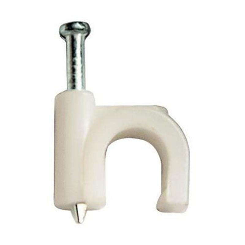 Скоба для кріплення дроту діаметром 5 мм до стіни, білого кольору, в упаковці 100 штук