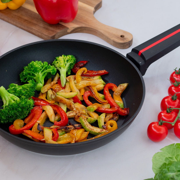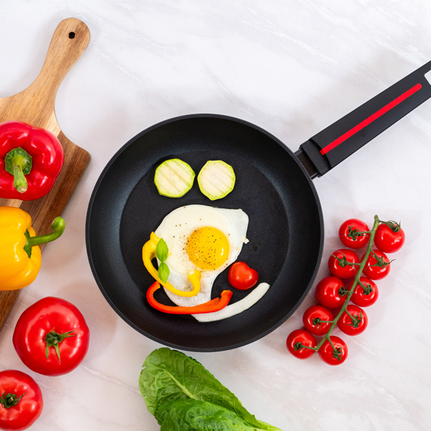 Так, QUICK FRY. У міру нагрівання сковороди змінюється колір індикатора. Як тільки сковорода досягає максимальної температури, індикатор Quick Fry стає повністю червоним, показуючи, що досягнуто рівномірної та оптимальної температури для приготування страв