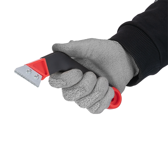 Високий рівень зручності під час роботи даним шкребком досягається за допомогою двокомпонентної ручки з пластику з прогумованим покриттям. Її ергономічна форма гарантує надійний хват інструмента без проковзувань, а невелика вага допомагає працювати довше без втоми у руках. Також на руків’ї передбачено отвір для зручного зберігання шкребка на стіні.