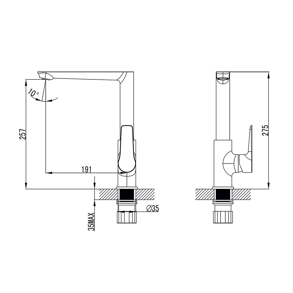 Змішувач GARDA Ø35 для кухні Г-вилив на гайці CORSO 9605103 (BC-4B221W)
