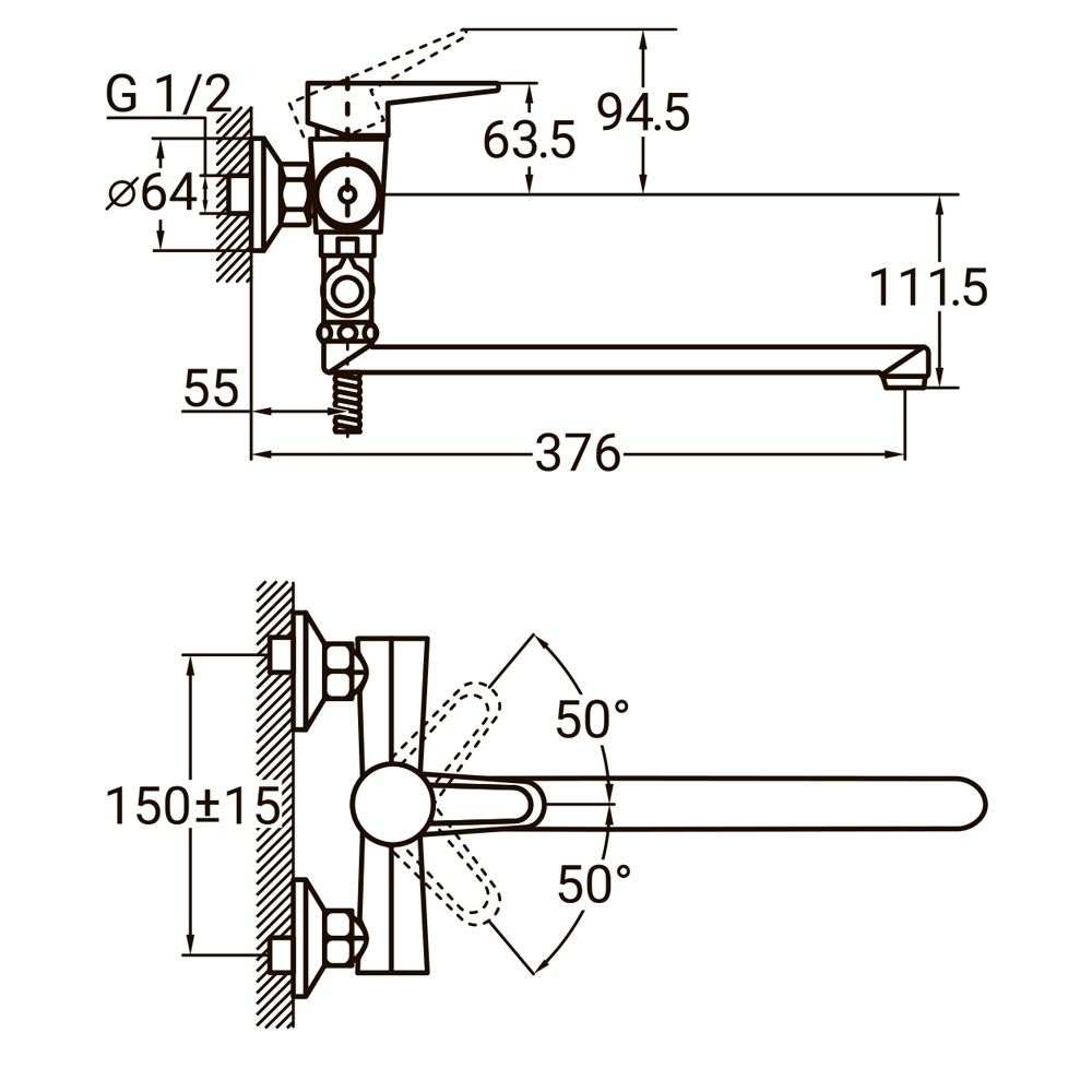 Змішувач для ванни HL-3C230C від ТМ Акватика укомплектований шлангом для душу з нержавіючої сталі (1500 мм), а також лійкою та кронштейном із міцного ABS-пластику. Тип кріплення – настінний, за допомогою ексцентриків із захисними декоративними відбивачами.