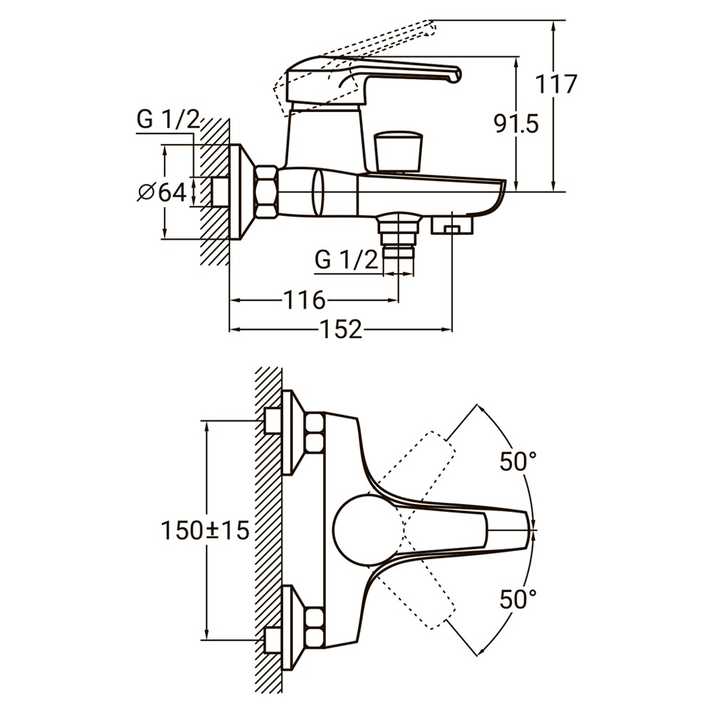 Змішувач для ванни HM-1C131C складається з литого корпусу з важільним керуванням та витяжним дивертором. Для утримання вапняних відкладень, а також збагачення потоку води повітрям у «носику» встановлено аератор.