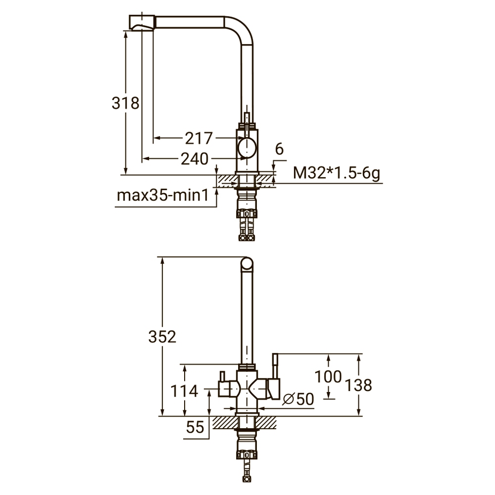 Змішувач KT Ø35 для кухні гусей з виходом для питної води на гайці SS AQUATICA (KT-4B770P)