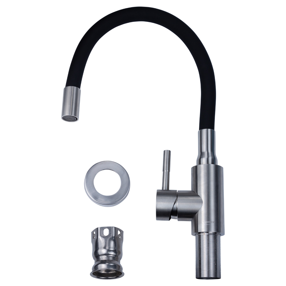 Змішувач KT Ø35 для кухні гусак силіконовий на гайці SS AQUATICA (KT-4B570P)