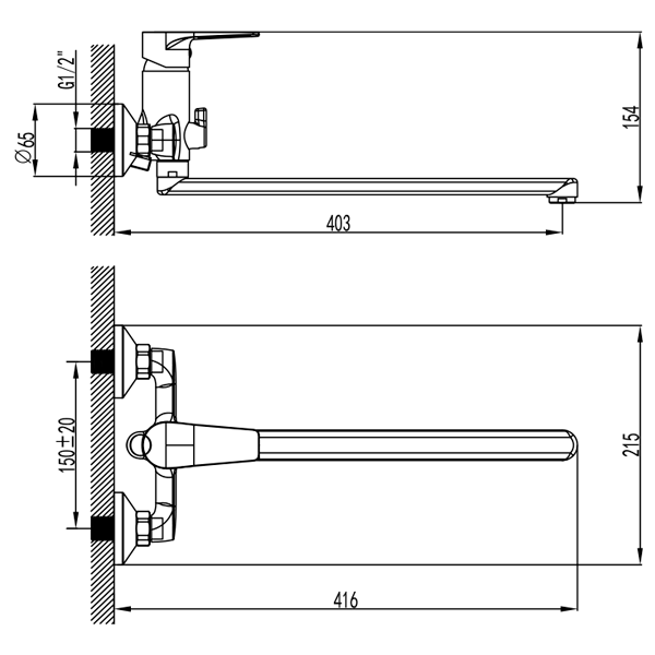 Змішувач LIRI Ø35 для ванни вилив прямої 350мм дивертор вбудований картриджний CORSO (DF-2C240C) (9632210)