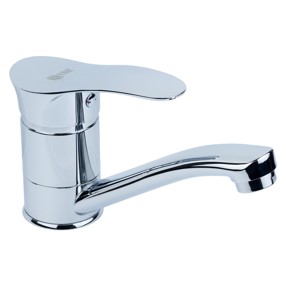 Змішувач для кухні TAU SE-2B145C з прямим коротким поворотним виливом, тип керування – одноважільний. За регулювання напору та температури води відповідає керамічний картридж. Покриття крана – хромонікелеве, що надає виробу сріблястого блиску та стійкості до корозії. Модель підходить для маленьких кухонних мийок.