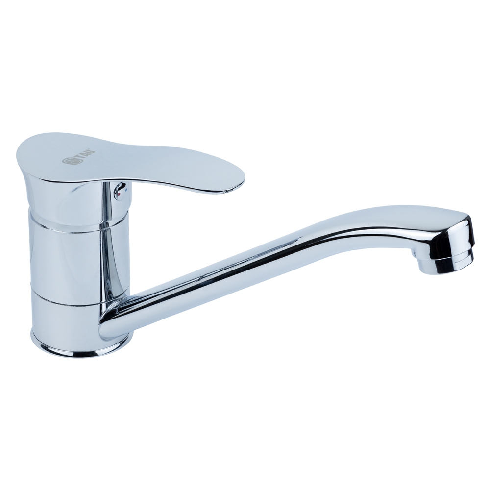 Змішувач для кухні TAU SE-1B245C одноважільного типу, з прямим довгим поворотним виливом. Картридж - керамічний з діаметром 40 мм, покриття - хромонікелеве. Модель підходить для мийок різних конфігурацій, оскільки виконана у класичному стилі.